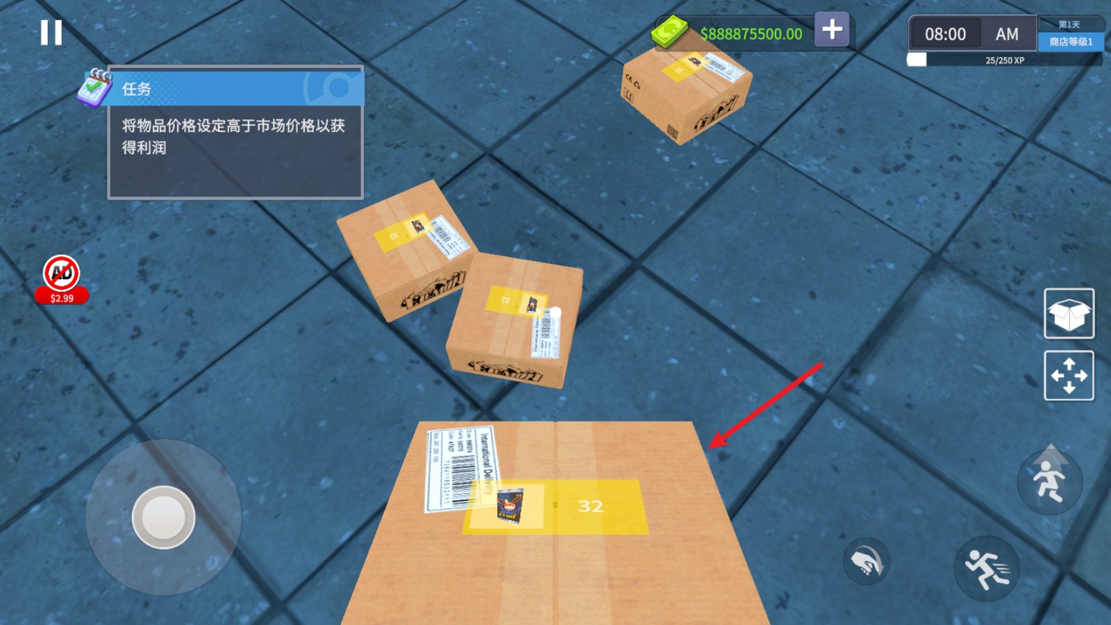 游戏开始后,首先点击界面左上角的手机图标,这里是你进行采购的地方。通过点击你需要的卡包,加入购物车并付款,随后,商品将被送到店门口,准备好迎接你的新货物。