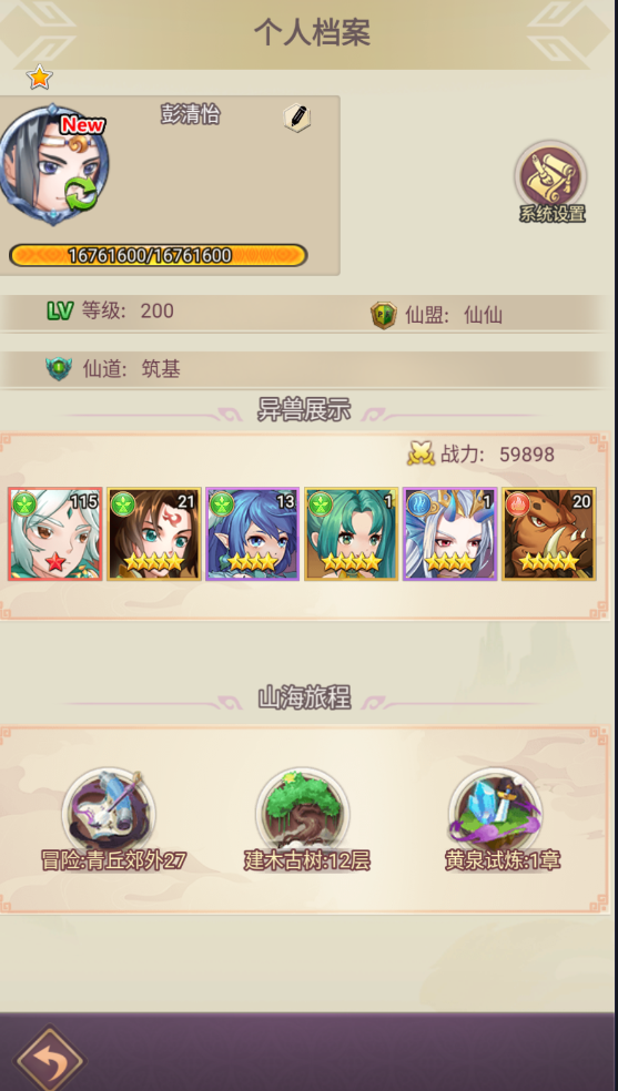 山海经题材的卡牌游戏,喜欢无脑刷的可以玩玩,福利还不错。我个人比较喜欢这种刷刷刷,然后 升级 飞快的感觉。活动还送五星白虎,还有其他不错的福利,每天上线玩玩,还是挺舒服的。