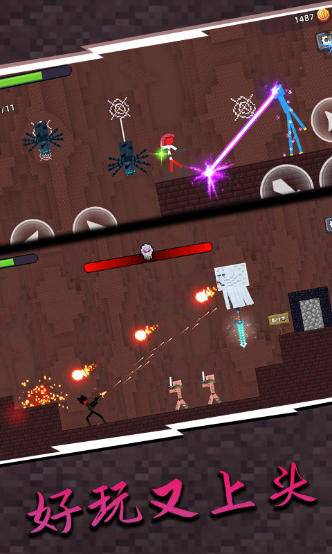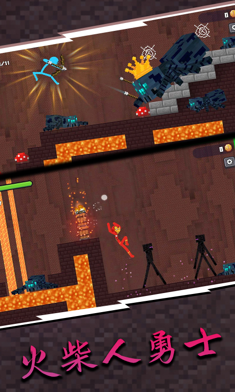 极具创意的 动作 类 战斗游戏 ,你将扮演火柴人王者,在像素世界中独自冒险。游戏中提供了多种武器供玩家使用,并且还有许多皮肤可以选择,各种玩法等待你的探索。