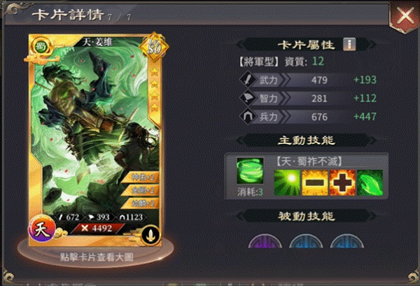 基本上拿到刘关张三兄弟才会开始主练蜀枪队,这三只也是最难收集的。另外蜀枪队也几乎都会配置姜维,这个武将在此队伍会有很好的发挥。剩下的一个位置就比较自由了,可以的话还是以蜀国枪兵为主,可以吸到刘备提供的Buff,因此课长玩家可能有的赵云、平民玩家用的张星彩、魏延,都是不错的选择。