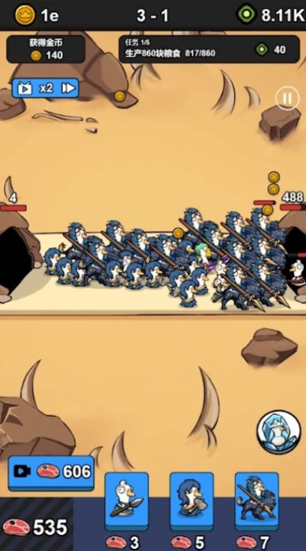 进击吧鹅鹅版是一款主打自由征战的策略类游戏。在游戏里,玩家能够组建起规模庞大的鹅鹅战队,继而开启一场又一场扣人心弦的激烈对决。只要玩家具备恰当的指挥能力,就能取得最佳成绩,创造出令人难忘的结局,这种成就感会让人感到十分开心。游戏中,每一名战士都需要玩家耐心解锁,如此才能充分发挥出个人能力,进而为玩家带来诸多胜利,而这种兴奋感也会完美地持续下去。