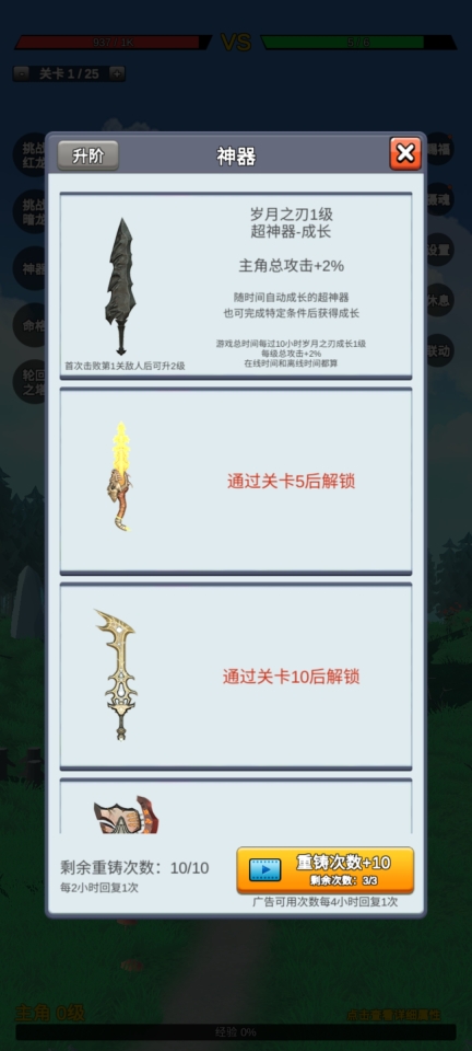 神器重铸的保底次数从10次改为5次,可以更快升阶了