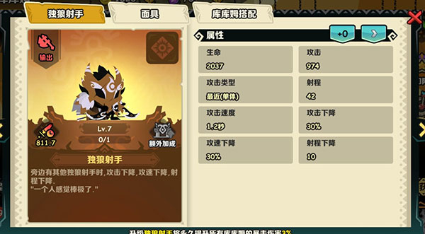 独狼射手是输出颇为可观的库库姆,然而其机制存在限制,倘若旁边还有其他独狼射手,它的输出便会全面降低。