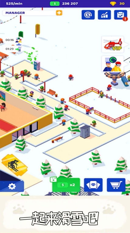 这是一款趣味性十足的模拟经营游戏,玩家需充分施展策略,方可更出色地经营滑雪场与度假村。