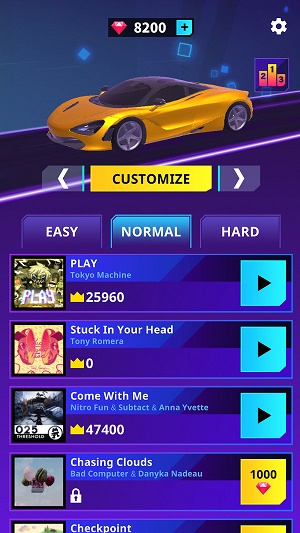 赛车 是一款能让玩家尽情享受的游戏,各种炫酷的赛车将在游戏中亮相,玩家可以自由选择,而且游戏的背景音乐非常动感,掌握好节奏来玩这款游戏,不同难度的赛道在等着玩家体验,快来掌握好节奏开始吧。