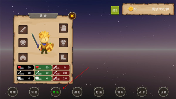 启动地下城与商人的最新版本,点击进入后,通过选择【角色】选项,你可以查看已拥有的角色的各项属性和装备详情。