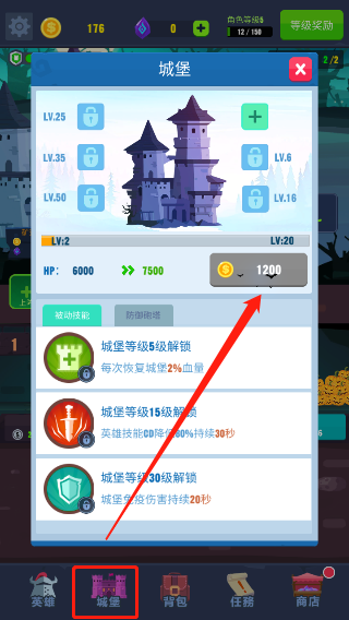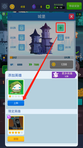 在城堡之中,我们还可添加英雄,英雄可协助玩家消灭敌人
