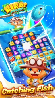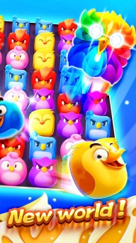 游戏的玩法与其它三消游戏相似,只要排列出三个相同颜色的小鸟就能消除,而四个或五个及以上的相同颜色小鸟可以合成各种不同的消除工具。