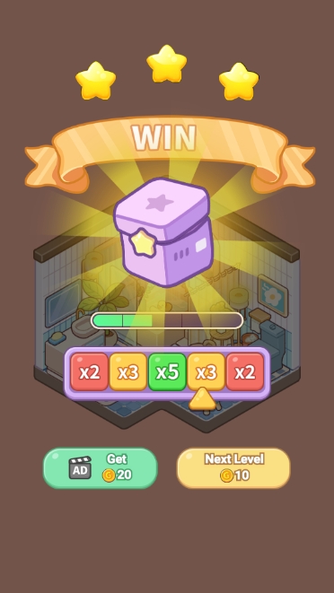 当玩家将大部分物品成功整理到衣柜里,达到关卡要求,即可过关并进入下一关。